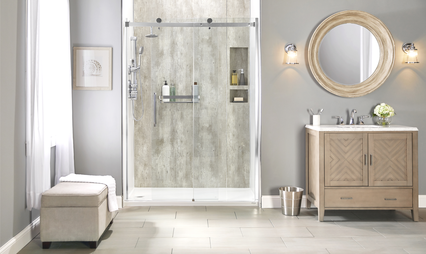The process starts by filling out the form at the top of this page. Your local Jacuzzi Bath Remodel representative will contact you and schedule a Free Design Consultation at a time that is most convenient for you. They will go to your house to understand your design vision and craft a unique space for you, showcasing samples of all Jacuzzi® branded products, from walls to bases, to fixtures and accessories. Finally, a certified Jacuzzi Bath Remodel installer will transform your bathroom in as little as one day.