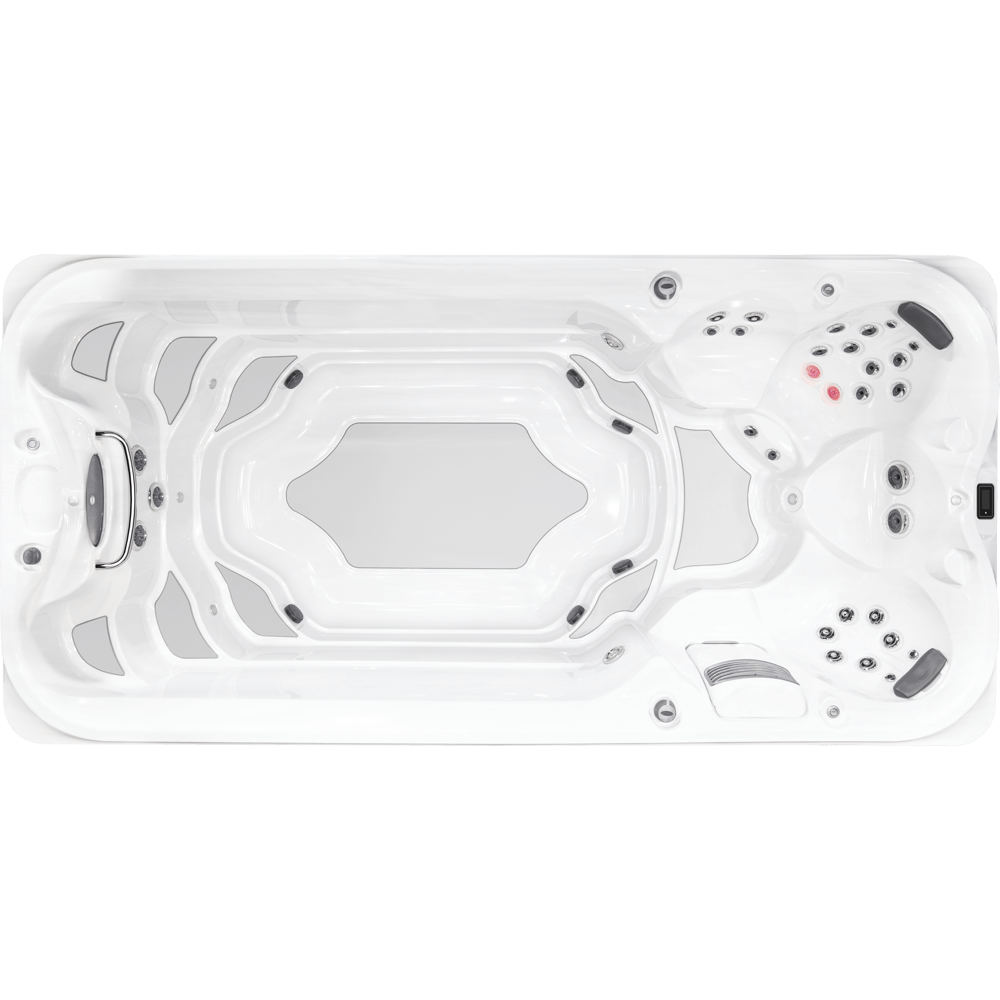 A unique SmoothSwim™ shell design incorporates hips in the shell to stop reflective waves and keep you in your swim lane. Premium LED lighting, an illuminated waterfall, exterior running lights, and an illuminated status indicator light adds elegance and ambiance.