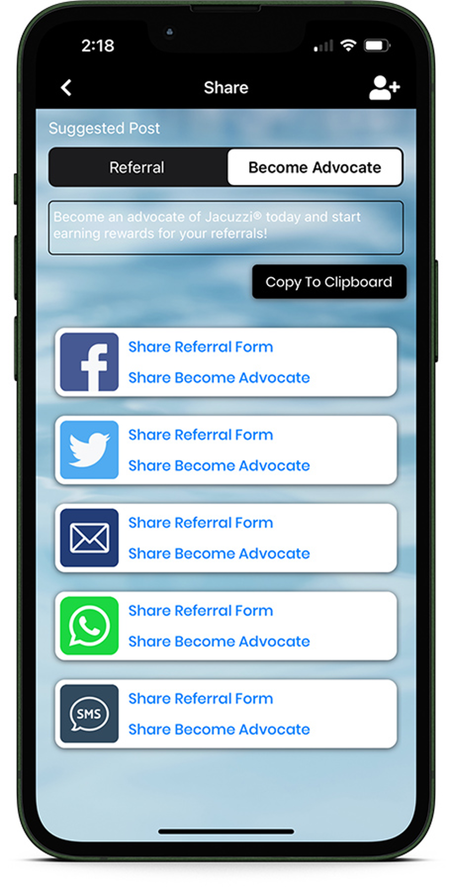 Get $200 every time a friend or family member purchases a Jacuzzi hot tub. We will send you an alert from our app letting you know that your account has been credited and you can choose a gift card or bank deposit.